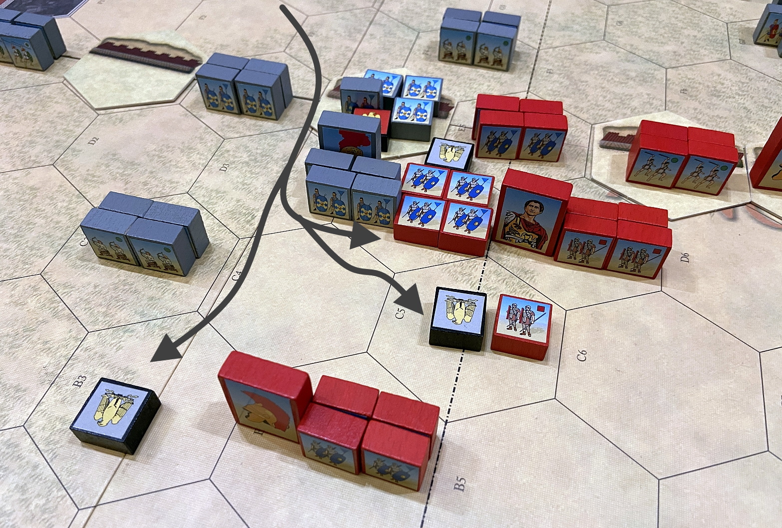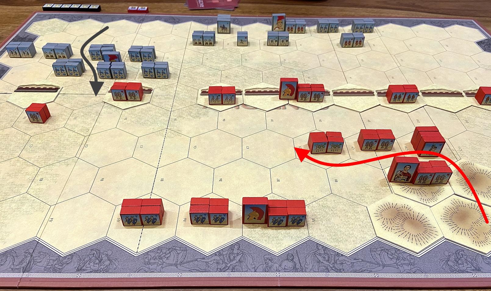 That was great session to remember! Marcin’s Pompey Troops were getting one Victory Point for each unit which exited the board on my left section. I had Caesar on map but be was far away while most of my troops were dispersed. A really close game with as you shall see, with pretty historical outcome!