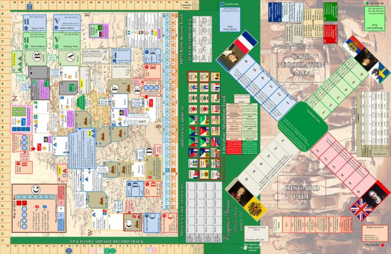 Thus, in one dramatic move, France kept Austria out of the war! The Armistice would continue. There’d be no battles possible on Central European Track A, Northern European Track B, or the Italian Front Track F. Furthermore, Chris had expertly played so Austria’s sole Military Operation marker remained on the Negotiation Table while both British Military Operation Issue markers, as well as the one Russian, wound up on France’s Track.