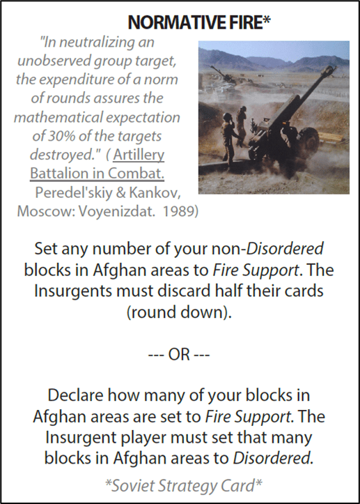 In many ways, the application of normative fire typifies the Soviet approach the war. The Soviets were superior, technologically and in numbers, to their opponent. But their fighting style and assumptions were outmoded and ill-suited for the kind of conflict they found themselves in. The Soviet reliance on massed artillery firing barrages, to shatter defense of stationary targets before advancing, was unable to achieve the desired results in Afghanistan because guerilla fighters will not maintain a linear line of defense and will not hold static positions.