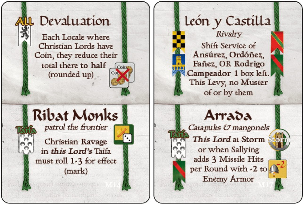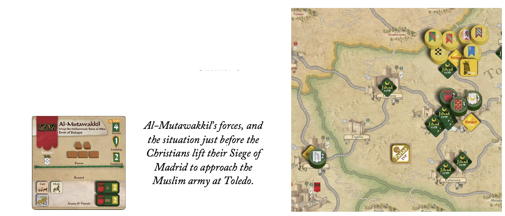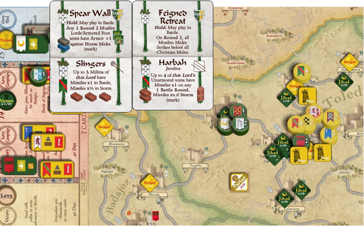 Maneuvers. Given the very low mobility of Muslim forces, the biggest focus for the Muslim player would be to slow the Christians down and not let them get too far in VP or let the Muslims to lose too many Taifas or Lords.