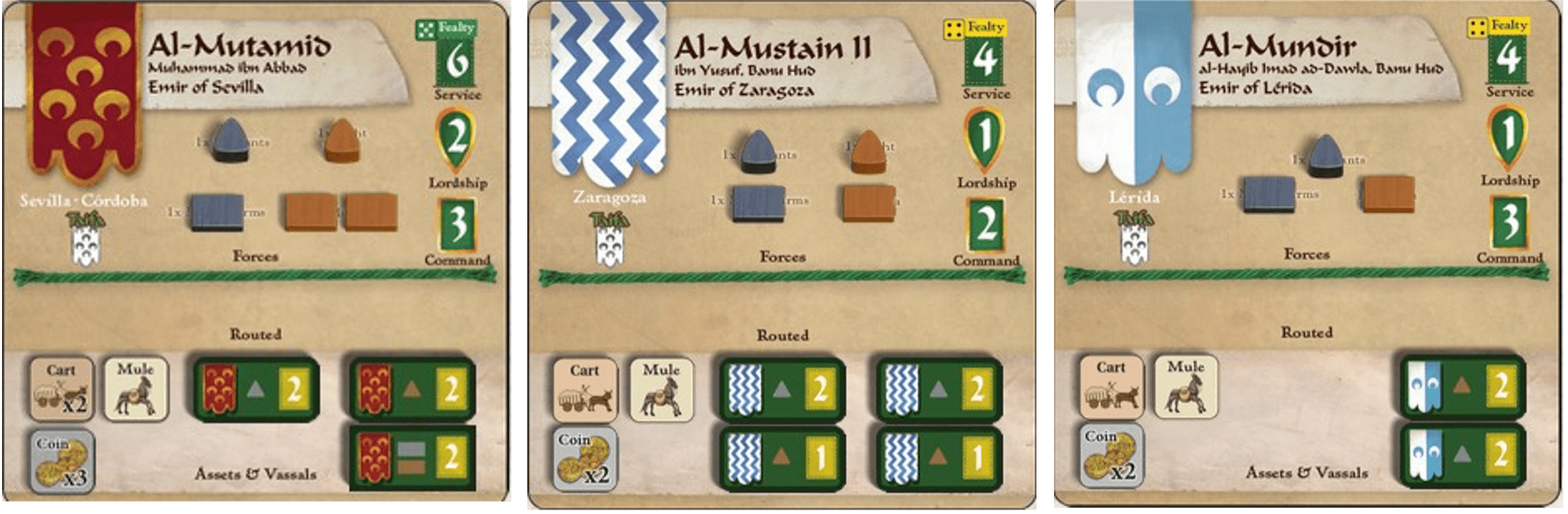 - The Muslims now field al-Mutamid of the Sevilla Taifa, al-Mundir of the eastern Lérida Taifa, al‑Mutawakkil of the western Badajoz Taifa, and Abd Allah of the southern Granada Taifa. Taifa Lords al‑Mustain and Abu Bakr plus Africans Yusuf and Sir remain Ready.