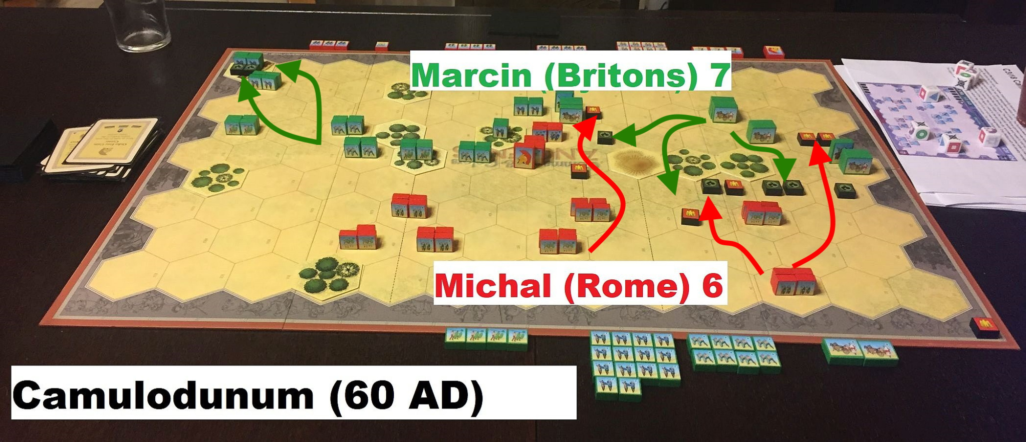 In the end both sides were pretty much exhausted and Marcin’s Britons won the game with a last, desperate roll, achieving 1 VP advantage.